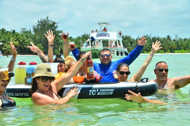 Enjoy a unique experience on our party boat off the coast of Bávaro. Immerse yourself in the crystal clear waters with our snorkeling service, relax at the open bar and make an unforgettable stop at a natural pool. Live the party on the high seas!